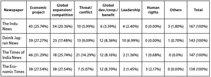 The news in India shows China and its BRI from many angles, which shows how complex the relationship between India and China is (Table 2). It's obvious that people know that China is gaining more power globally and the important plan behind the BRI (Umbach, 2022). News stories often talk about China's goals to change the way the world does business and government, with the BRI being a big help in this work. The BRI is often talked about as more than just an economic plan, but as China's way to gain power and control in Asia and other places (Asia Society Policy Institute, 2020). The press examines the country's political reasons for the BRI plans, pointing out concerns about what China wants to do in the future. Discussions also delve into the friendly relations between India and China, with the BRI usually being a key point of stress. The news reports show the good and bad changes in the two-way relationship driven by events related to the BRI.