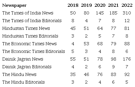Reflecting the views of India's most influential leaders, many of India's English-language media tend to have a more global perspective. Conversely, Hindi newspapers are known for publishing articles that reflect the opinions and priorities of the general population. This difference in readership means that multilingual publications sometimes offer different perspectives on global issues such as the BRI. Hindi media, for example, might emphasize regional or nationalist ideas, while English publications might offer more critical or sophisticated views. Including both helps to provide a full picture of the acceptance of the BRI across the spectrum. Ultimately, the choice of English and Hindi newspapers should help to explain the diversity of government and public views on the BRI. By combining the two language streams, which reflect elite and popular opinion respectively, it is possible to understand how media representations of the issue influence policy-making and strategic responses in India.