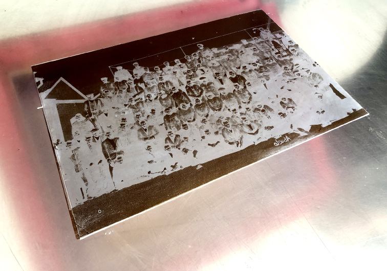 En un primer momento tuvimos nuestras reservas a la hora de trabajar con una pantalla con una hilatura superior a 100 hilos, ya que aunque el nivel de detalle es más pronunciado, la cantidad de barniz que atraviesa la malla textil podría no ser lo suficientemente cubriente para desarrollar una protección óptima para el proceso posterior de acidulación de la misma. No obstante, después de probar con diversas tramas, conseguimos unos parámetros más que satisfactorios de “calidad fotográfica” y nos planteamos un último reto: probar a generar variaciones en el proceso de estampación serigráfica, como primer acercamiento a las posibilidades que ofrecía el procedimiento, ya no como técnica de reproducción, sino como proceso que permite cierta libertad creativa al artista.