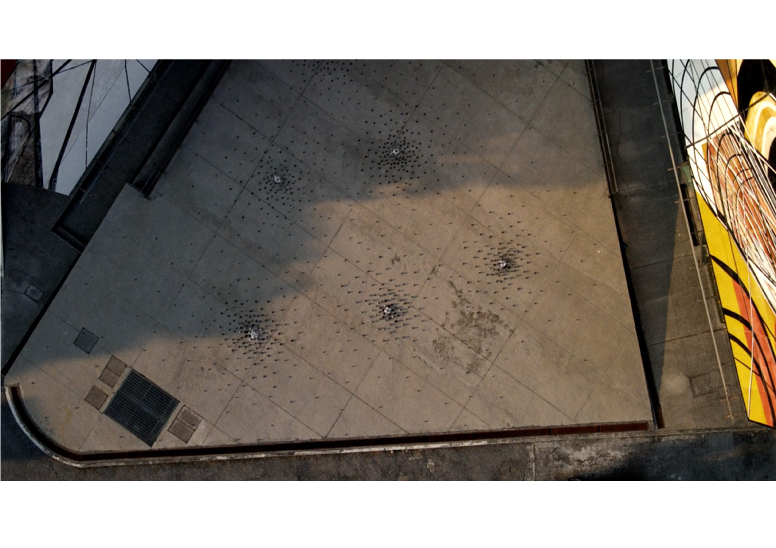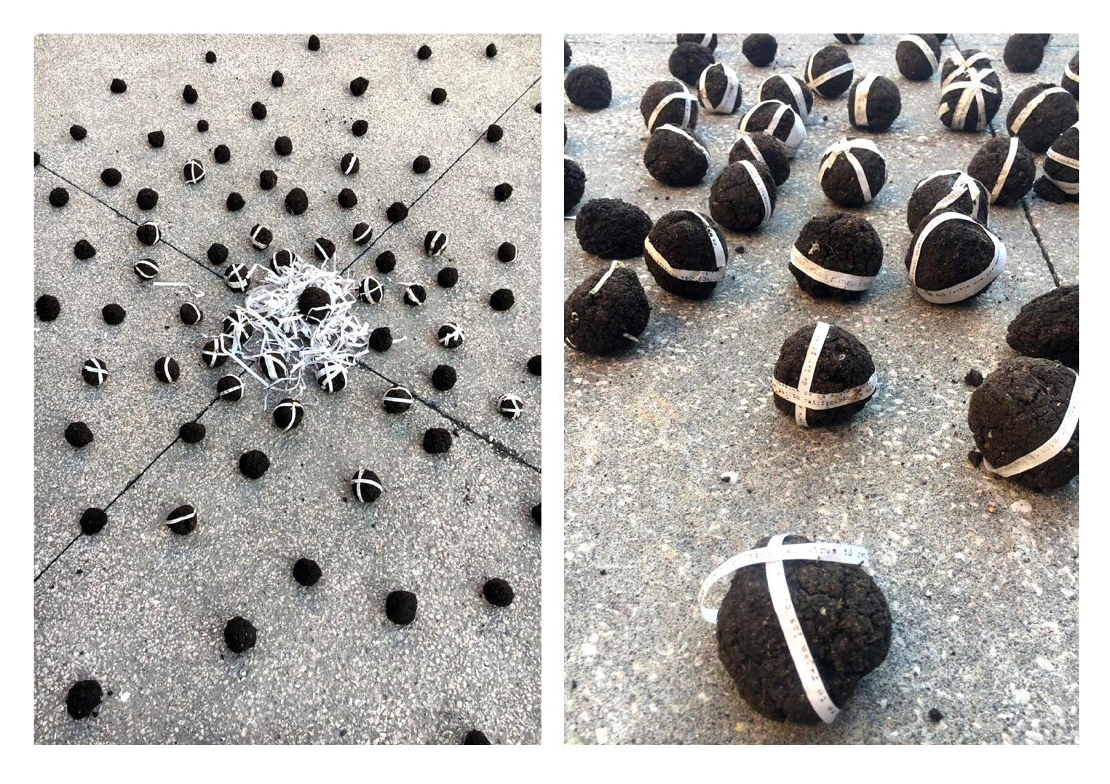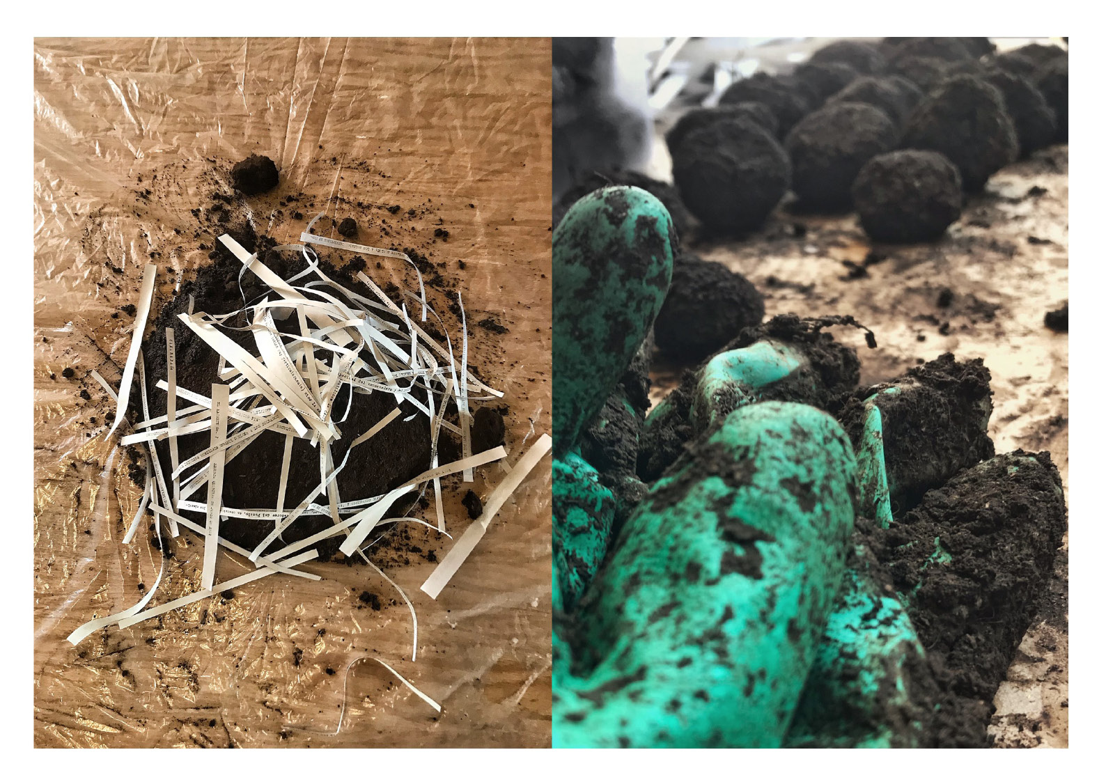 Bombas de semillas que se encuentran envueltas o tensadas mediante impresiones sobre papel revolución del Manifiesto del Sindicato de los Obreros, escrito en 1923 y publicado en 1924 por Siqueiros. Mismas que fueron instaladas y dispuestas al público en el espacio abierto de la explanada principal de la “Sala de Arte Público Siqueiros: La Tallera”.