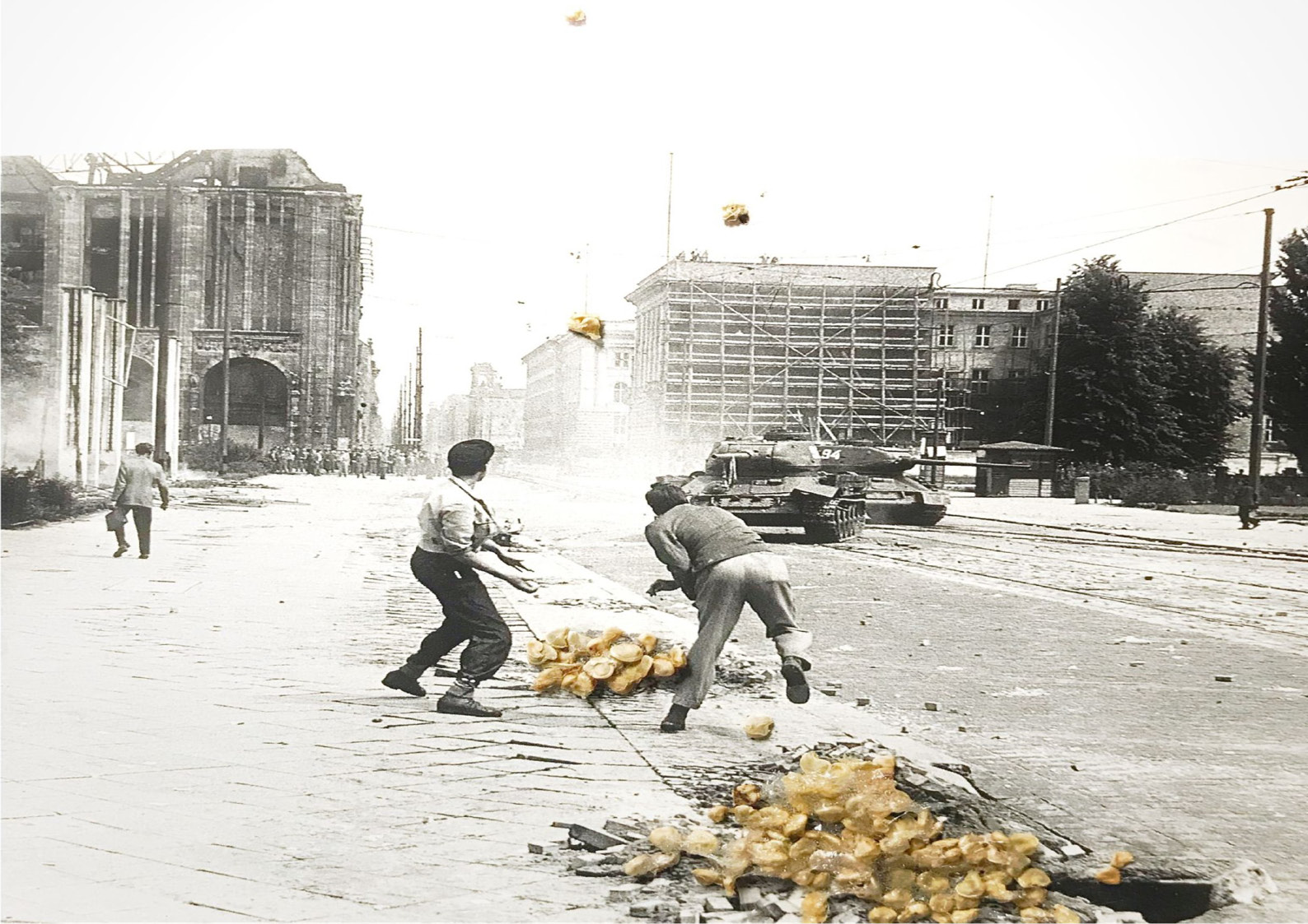 Frase que proviene de una entrevista a Siqueiros donde se refiere a sus participaciones en las manifestaciones y mítines. En ese contexto, la piedra era utilizada como instrumento de demarcación o proyectil para la defensa de un territorio, programa educativo o ideología.
