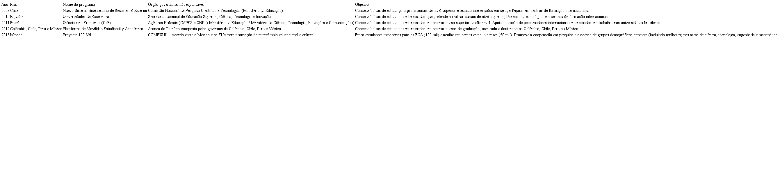 Com as transformações decorrentes da intensificação da globalização, a possibilidade de o setor produtivo das nações semiperiféricas competirem mundialmente depende da existência de quadros cada vez mais qualificados. Nesse contexto, as responsabilidades das universidades se ampliam. Frente ao exposto, qual é a política de internacionalização da universidade adotada pelo governo dos países semiperiféricos? Dados divulgados (Tabela ١) revelam que há expressivo esforço de encurtar o tempo, investindo pesadamente em MAI. Autores como Lima e Contel (2011) e Morosini, Dalla e Guilherme (2017) chamam atenção para a consolidação do processo de internacionalização alcançado pelas universidades dos países centrais, nos quais a internacionalização assume caráter estratégico, ultrapassa os programas de atração de acadêmicos internacionais na direção da promoção de Pesquisa & Desenvolvimento, em parcerias com empresas internacionais; da geração e registro de patentes, além da comercialização de consultorias a agências governamentais dos países semiperiféricos. No contexto dos países semiperiféricos, até muito recentemente, o fator preponderante do processo de internacionalização das universidades era apoiado pela oferta de programas de MAI, a exemplo do que se reúne na Tabela ١. Apesar da centralidade dos referidos programas, em virtude das instabilidades econômicas e das mudanças de governo, recorrentemente sofrem descontinuidades, interrompendo iniciativas em andamento, comprometendo a consolidação do programa e o amadurecimento do processo de internacionalização da universidade, freando relações virtuosas entre universidade e setor produtivo.