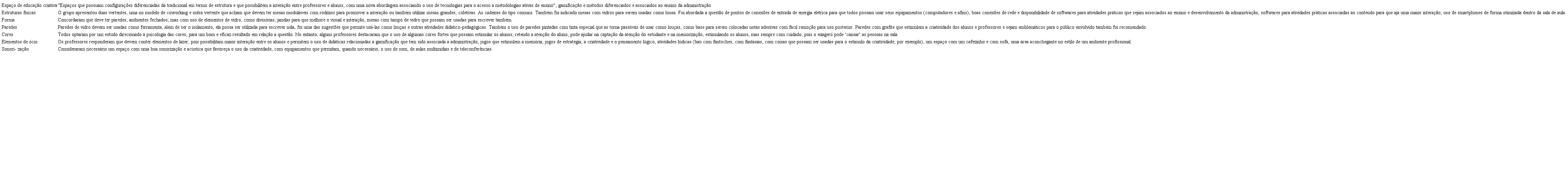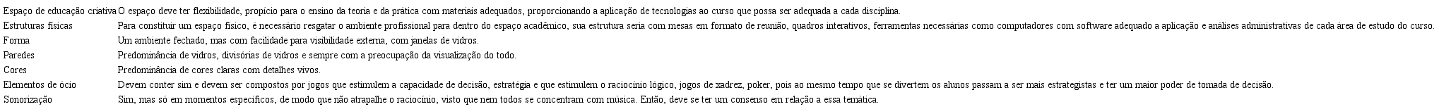 2. Que elementos físicos (ex. móveis, ferramentas, decoração etc.) devem ter nos espaços de educação criativa no ensino de Administração?