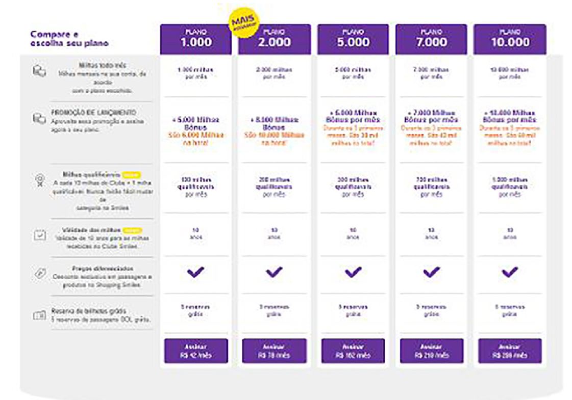 A família de produtos Smiles também foi ampliada, viabilizando, agora, o pagamento das taxas de embarque com milhas, bem como a reserva e pagamento de hotéis com milhagem.