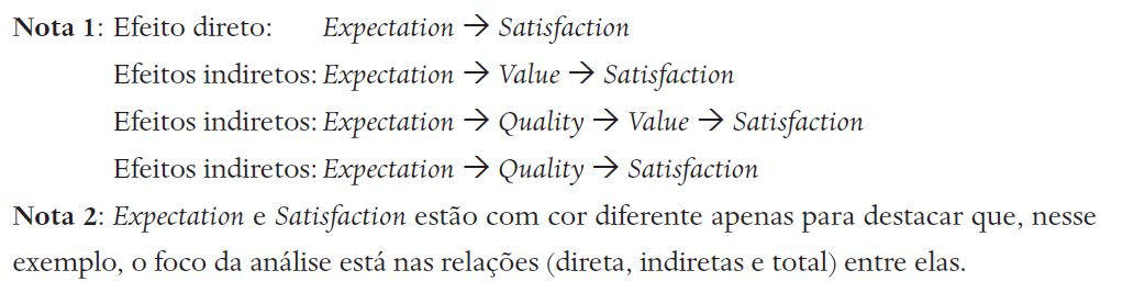Respondendo à questão colocada no início da seção 5, a Expectativa não tem um efeito direto na Satisfação, mas tem um efeito indireto (0.355, p<0.001), ou seja, é uma mediação total, por isso, ela é importante para promover a satisfação.