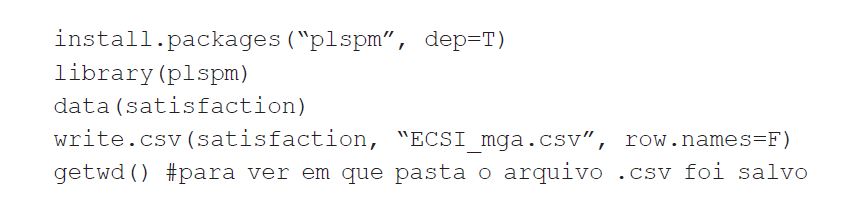 O modelo usado neste exemplo continua sendo o ECSI, mas os dados usados são aqueles disponíveis no pacote plspm do software R (SANCHEZ, 2013). São de uma pesquisa espanhola, que inclui a variável gênero e será usada como moderadora categórica neste exemplo. Para obter os dados, instale o software R e execute o script a seguir:
