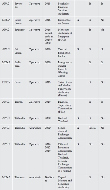 Banco Mundial. (s.f.). Key Data from Regulatory Sandboxes across the Globe. https://www.worldbank.org/en/topic/FinTech/brief/key-data-from-regulatory-Sandboxes-across-the-globe (consultado en mayo de 2021).