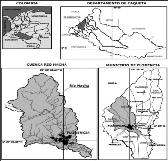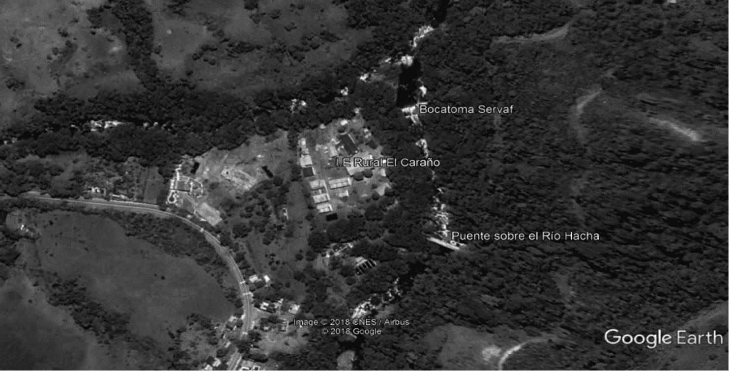 De manera específica, en el corregimiento El Caraño, zona rural de Florencia, capital del departamento de Caquetá, escenario de esta investigación, según el Plan de Manejo y Ordenamiento de una Cuenca-Pomca 2018. Este territorio está integrado por 52 veredas, con una población total de cerca de 10 373 habitantes y se caracteriza por la presencia de un paisaje de piedemonte y la exuberante vegetación que cubre las riberas del río Hacha. Su actividad principal es la agropecuaria con la producción de caña, cacao, huertas caseras, ganadería y especies menores, maderables y vivero forestal con especies nativas. Asimismo, en el sector servicios se ofertan lavaderos de automóviles y aproximadamente 20 balnearios turísticos (Departamento Administrativo Nacional de Estadística [DANE], 2005), como se observa en la figura 1 y la figura 2.