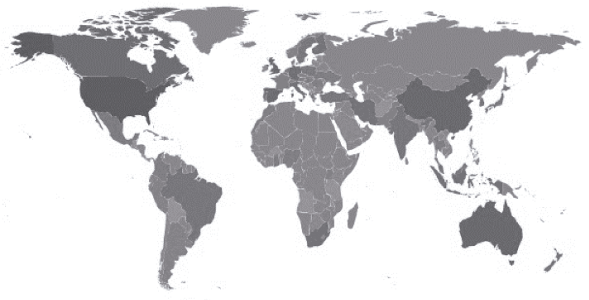 Al interrelacionar la formación comunitaria, la EA en comunidades, la formación ecoturística y el fomento del turismo de naturaleza, se resalta la dimensión de las ciencias sociales, las ciencias naturales y las ciencias de los negocios. El año con mayor producción académica en estas temáticas fue 2020 con 166 hallazgos, luego se observa 2019 con 161 documentos, y, por último, se ubica con 108 resultados 2017. En cuanto a los países líderes en producción investigativa, se mencionan a Estados Unidos, Australia y Reino Unido. Colombia presenta seis investigaciones en los últimos cinco años sobre estos importantes temas. El país de Suramérica que más aborda esta temática es Brasil, con 13 estudios, en esta interrelación, como se evidencia en la figura 4.
