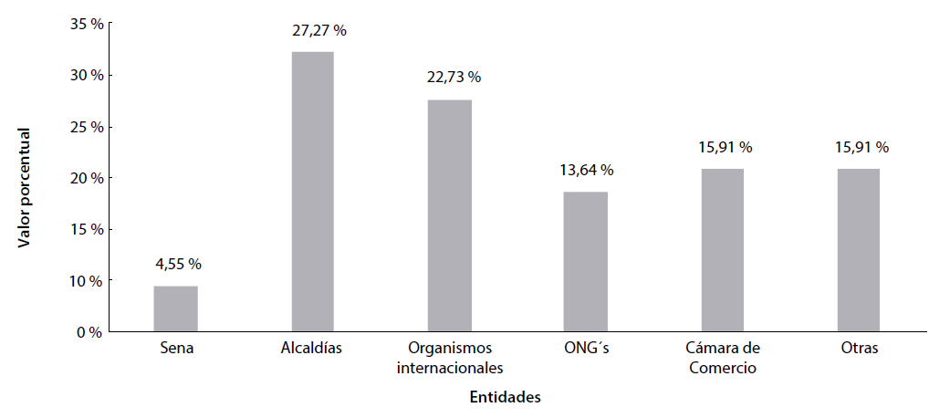 Las entidades más comprometidas con el impulso del turismo de naturaleza a través de actividades de formación son, por una parte, la alcaldía de la ciudad, aspecto relevante, porque al constituirse en política para agenciar en el territorio, se configura en una oportunidad para lograr las metas inherentes a este tipo de turismo. Por otra parte, es representativo el papel del sector privado conformado por organismos, generalmente, de tipo internacional, la cámara de comercio y ONG. No obstante, el apoyo manifestado es aún incipiente por la dimensión de las tareas a emprender en este tipo de emprendimiento. De igual manera, la universidad de la región aún no emerge como la institución líder de estos procesos, pese a tener como eje misional la extensión a través del trabajo con las comunidades.