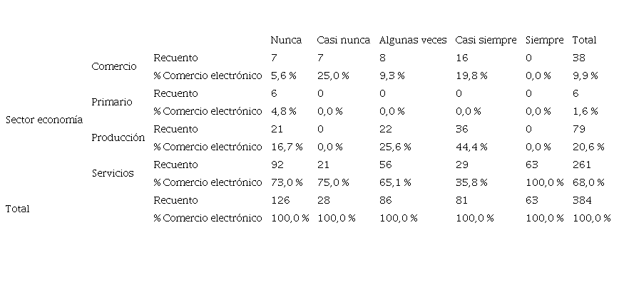 Todos los sectores de la economía fueron golpeados por la crisis, unos en mayor y otros en menor grado, de acuerdo a su grado de conocimiento y disposición para asumir las tecnologías. Para este estudio, se tomaron todos los sectores de la economía y el sector terciario se dividió tanto en comercio como en servicios, debido a la importancia de cada uno de ellos para el contexto. La participación de los sectores empresariales fue así empresas del sector primario del subsector producción un 20,57 %, del subsector comercio un 48,44 % y del subsector servicios un 27,08 %. Esta participación se debe al uso de las tecnologías por parte de las empresas, pues aquellas que se encuentran en el mayor pico de la crisis, no despertaron el interés en abordar procesos de innovación, dejando de lado la posibilidad del cambio inminente ante la situación presentada.