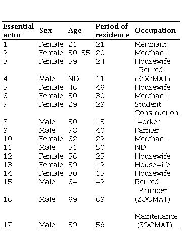 At the end of each one, gratitude was expressed for the time given, and using the snowball technique (asking for collaborators who could contribute to the interviews), future interviewees were registered to track them down and continue with the research. The interviews were recorded with a Panasonic RR-XS350 model digital recorder and in a field log, with the prior verbal consent of the interviewees. Data on each interviewee, such as sex, occupation, age, name, and period of residence, were recorded and entered into an Excel database (Table 1).