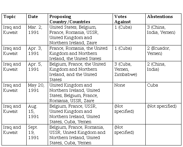 Ecuador's participation in the UN Security Council provides a platform to demonstrate agency or positioning within the system, applying non-alignment as a decisive factor in its voting. During 1991-1992, when the US was the hegemonic power and consensus was almost universal among Council members, Ecuador largely aligned with the majority. However, there were two notable exceptions on which the country abstained from voting, reflecting its adherence to the precepts of non-alignment despite pressure from major powers. The cases occurred under Resolution 687 of 1991 and Resolution 773 of 1992, both related to the Gulf War. Ecuador abstained because the Security Council lacked the authority to define or delimit the borders between Iraq and Kuwait and because such matters should be addressed by the International Court of Justice (S/PV. 3108). Thus, Ecuador used its agency to defend international law and the principles of non-alignment.