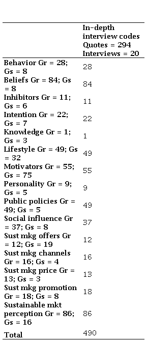 To gain a deeper understanding of consumer perceptions of sustainable consumption, verbatim transcripts of the in-depth interviews were systematically analyzed using Atlas.ti. A coding framework was developed to classify pivotal themes, enabling a structured examination of the factors that shaped sustainable consumer behavior regarding sustainable marketing.