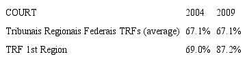 Data obtained from the CNJ website and the Cartilha Novos Tribunais: uma questão de justiça (New Courts Primer: a matter of justice), commissioned by the Association of Federal Judges of Minas Gerais (AJUFEMG), November 2010. (ASSOCIATION OF FEDERAL JUDGES OF MINAS - AJUFEMG (Brazil). Cartilha Novos Tribunais: uma questão de justiça. Minas Generais: AJUFEMG, 2010. P. 34). Backlogged cases and number of new claims that have not been tried. <http://www.cnj.jus.br/>. It should be noted that a significant part of this increase is due to the change in methodology by CNJ, from 2008 to 2009, when calculating the rate of backlog “(de Moraes, op. Cit.).