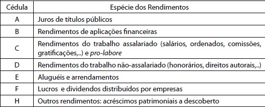 A Lei nº 154/1947 alterou a categorização dos rendimentos, implementando nova classificação cedular das rendas, em número de oito, indicando-as pelas primeiras letras do alfabeto: A, B, C, D, E, F e H. Manteve-se o sistema compositório, pela tributação proporcional (Cédula A - 3%; Cédula B - 10%; Cédula C - 1%; Cédula D - 2%; Cédula E - 3%; e Cédula H - 5%), seguida da incidência de alíquotas progressivas sobre o total dos rendimentos (alíquotas variando de 1% a 50%).