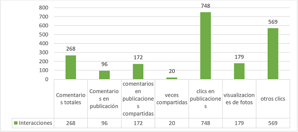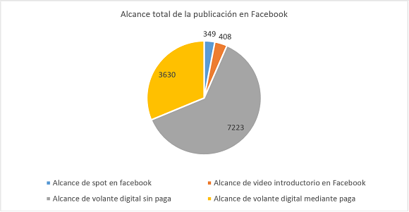 Cabe señalar que también se efectuaron publicaciones de apoyo a la publicidad principal en video con un alcance total de 757 personas, se gastó una pequeña cantidad de dinero, 110 pesos mexicanos, para contrastar el alcance orgánico de la publicación contra el pagado y saber cuál de los dos resulta más efectivo en este caso, siendo la publicidad sin paga la de mayor eficacia, el alcance total puede apreciarse en la siguiente Figura 13.