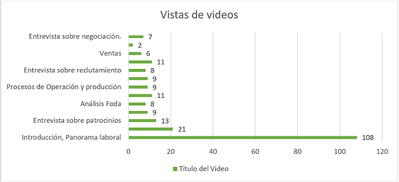 El video más visto fue el de introducción y panorama laboral con 108 reproducciones, lo anterior debido a que fue el único video del curso que se publicó (por ser de autoría original), abiertamente en la página de Facebook creada para el curso.