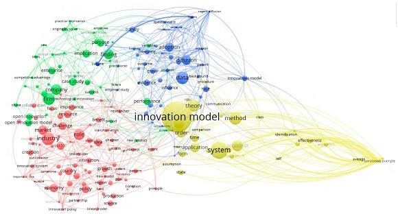 En línea con los resultados obtenidos con el software VOSviewer® se verifica el reciente planteamiento de otros autores, que se han esforzado en caracterizar los desafíos que enfrentan los modelos de innovación, hasta proponer la necesidad de incluir: asuntos ambientales y ecológicos en el estudio sobre el tema ( Marinova y Phillimore, 2003), dimensiones sociales que consideren las diferentes partes interesadas ( Escobar-Sierra, Lara-Valencia, & Valencia-DeLara, 2017; Quesada-Vázquez & Rodríguez-Cohard, 2015), etapas preliminares del proceso innovador como la ideación y el diseño ( Hennala, Parjanen, y Uotila, 2011; Mike Hobday, Boddington, y Grantham, 2012), nuevos actores que propicien la interdisciplinariedad de su análisis ( Hennala et al., 2011; Quesada-Vázquez y Rodríguez-Cohard, 2015), diferentes modelos para integrarlos durante la implementación ( Friederichsen, Minh, Neef, y Hoffmann, 2013), políticas e instrumentos públicos conexos ( Gokhberg y Kuznetsova, 2011; Wojan, 2017), y conceptos cercanos como el emprendimiento corporativo ( Corbett, Covin, O?Connor, y Tucci, 2013; Hashimoto y Nassif, 2014).