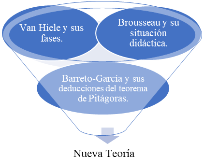 Esta investigación se va a desarrollar teniendo en cuenta las tres fases del modelo Van Hiele, expuestas por Jaramillo & Esteban (2006), integrando las TIC como herramienta didáctica junto con el objeto matemático (el teorema), su interpretación geométrica y sus respectivas aplicaciones en contextos sociales. También se pretende el desarrollo del aprendizaje colaborativo para que los estudiantes desarrollen la capacidad de resolver problemas de manera independiente. En este punto, los alumnos contarían con la asistencia de un agente (el profesor) responsable de mediar y diseñar condiciones que les de seguridad y que permita la apropiación del conocimiento para luego compartirlo en su contexto; es decir, se pretende que los estudiantes intercambien ideas utilizando herramientas tecnológicas que les posibiliten interactuar con problemas contextuales. Grosso modo, las fases del modelo referido son: