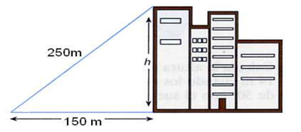 6. Si nos situamos a 150 m de distancia de un edificio, la visual del extremo superior es de 250 m. ¿Cuál es la altura total del edificio?
