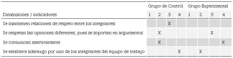 Una vez aplicado el instrumento (rúbrica) por parte del docente tutor (quien orientó el curso en ambos grupos) se obtuvieron los siguientes resultados, evidenciados en las Tablas 1, 2 y 3, a continuación:
