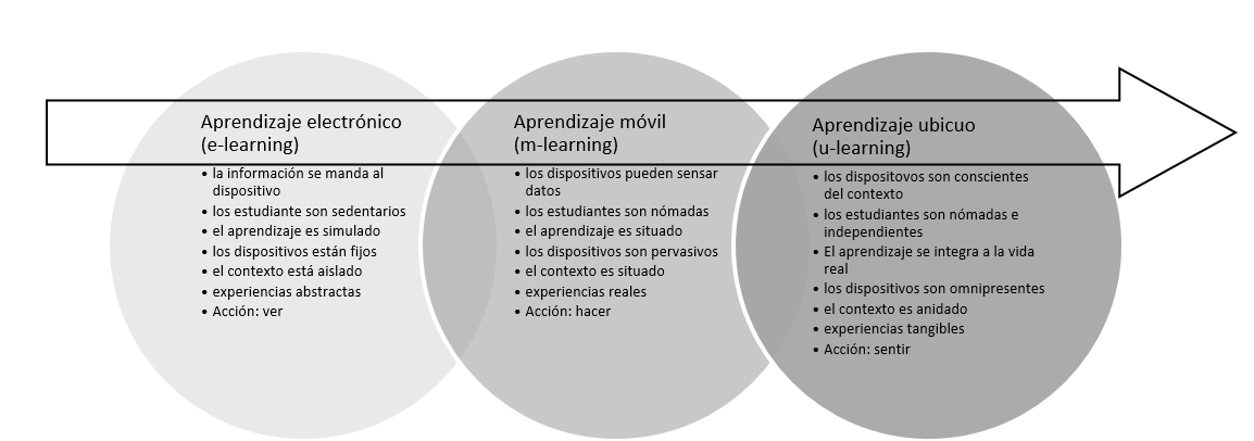 Hace 15 años, los dispositivos móviles contaban con funcionalidades bastante limitadas. El término podía referirse a un teléfono celular, un portátil o un asistente personal digital. Con la llegada de los teléfonos inteligentes el mundo cambió. Términos acuñados hace décadas como el aprendizaje electrónico, que empezaban a crecer gracias a la movilidad tecnológica con nuevas, en ese entonces, aproximaciones al aprendizaje, como el aprendizaje móvil y el aprendizaje ubicuo se vieron enfrentados con una nueva normalidad en la que, de pronto, una simple palabra: mobile, ya no solo referenciaba al adjetivo móvil, ni era un nombre corto para el teléfono celular, sino que ahora representaba a un dispositivo que reunía todas las capacidades de comunicación, sensado, procesamiento y multimedia usadas en la cultura popular. Así, es comprensible la proliferación de conceptos muchas veces equivalentes, que provocan un desorden para formalizar un modelo como el aprendizaje ubicuo, ya que la mayoría de sus características están ahora presentes en un teléfono inteligente. Sin embargo, el aprendizaje ubicuo se muestra como una iniciativa no sólo adecuada para alcanzar el aprendizaje situado y significativo, sino también para conectar con los estudiantes del siglo XXI, ya que utiliza al cómputo móvil para entregar experiencias educativas personalizadas en cualquier momento y lugar. Mejor aún, lo puede hacer mediante múltiples dispositivos, incluyendo al más importante de la última década, el teléfono inteligente, lo que le garantiza una alta aceptación inicial de la población.