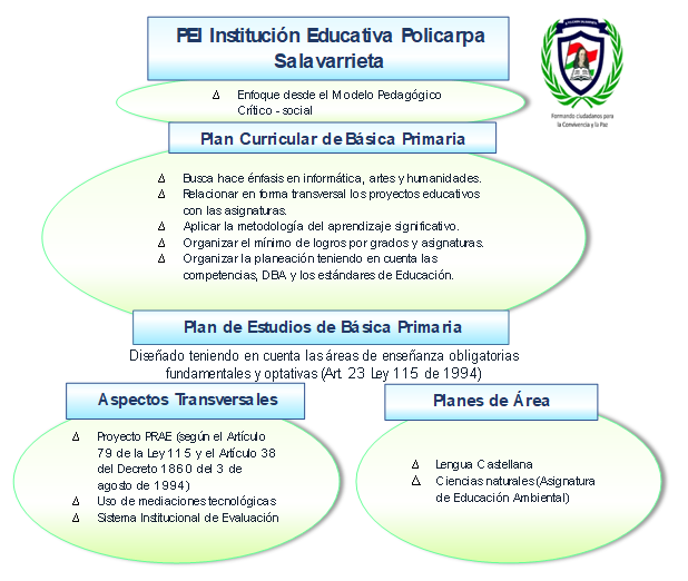 El PEI de la Institución Educativa Policarpa Salavarrieta (2017) se desarrolla a partir del modelo pedagógico crítico-social, su enfoque sociocultural propicia en los estudiantes la reflexión, conciencia, sensibilidad y pensamiento crítico ante las problemáticas sociales. Dando cumplimiento al Artículo 14 de la Ley 115 (1994), el PEI contempla proyectos transversales, dentro de los cuales se resalta el PRAE titulado Mi colegio, mi mundo: haciendo pequeñas cosas, logramos grandes cambios, cuya finalidad es estudiar, observar, comprender y crear soluciones viables en la construcción de un ambiente sano para mejorar la calidad de vida y bienestar de los miembros de la comunidad educativa.