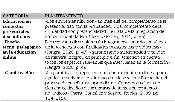 La contingencia causada por la emergencia sanitaria (COVID-19), representó varios cambios en el sistema educativo. Ante esta y otras situaciones emergentes, «el concepto híbrido constituye una posibilidad de continuo en el proceso enseñanza-aprendizaje» (Osorio Gómez, 2011, p. 32). Si se cuenta con una planeación adecuada, en lugar de representar una carga en el quehacer docente, puede facilitar los procesos al prodigar los recursos necesarios para que los encuentros académicos se optimicen.
