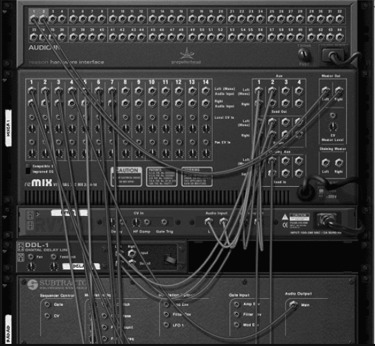 In the analog era (or the transition toward digital audio)[4], recording studios were configured with a series of complex connections (Figure 1) that were drawn in maps to guide novice engineers and producers. Currently, this step is completed automatically inside DAWs.