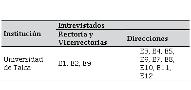 Para el proceso de levantamiento de información se revisaron documentos institucionales de la universidad examinada para el periodo comprendido entre los años 1990 y 2022, y se realizaron entrevistas con actores claves involucrados en materias de gobierno universitario. En total se realizaron doce entrevistas con sus tomadores de decisión. La Tabla 2 muestra la caracterización de los entrevistados.