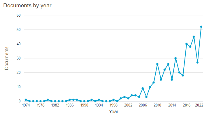 A continuación, en la Figura 3, se muestra la evolución de publicaciones sobre la temática investigativa a través de los años. Se destaca que, sobre los tópicos tratados en este estudio, se ha estado investigando con un creciente vigor desde el año 2000, observándose que el interés sobre el aprendizaje compartido y/o colaborativo se intensifica a partir de 2010, elevándose mayormente su relevancia desde el año 2018 y manteniéndose vigente hasta el presente.