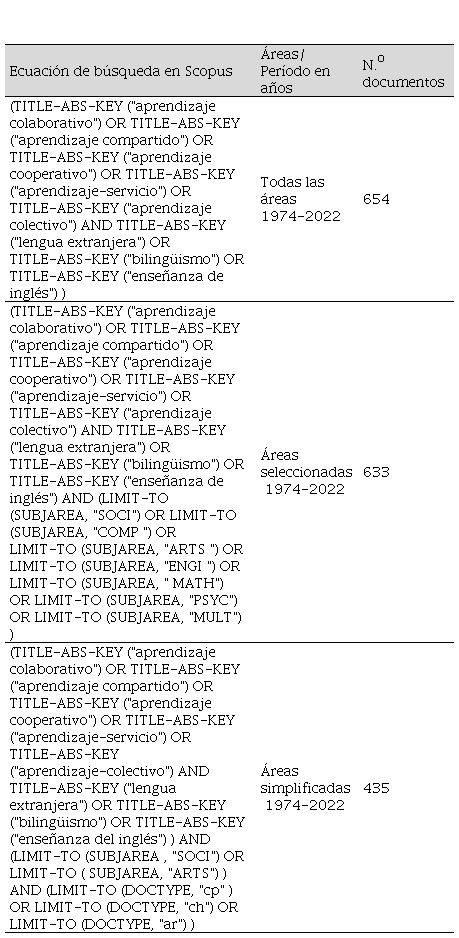Este tipo de revisión permitió realizar el análisis bibliométrico para esta investigación, que se trata de una técnica que permite identificar las tendencias actuales en la investigación, como los autores, las revistas, las palabras clave y las metodologías más utilizadas de conformidad con los estudios de diferentes autores, entre los cuales se encuentra Espinosa et al. (2020). El análisis textual de documentos es otra técnica utilizada en la revisión sistemática de la literatura, lo cual permite sintetizar los principales hallazgos de la investigación que se revisa, identificando las similitudes y diferencias entre los estudios (Revilla Figueroa, 2020; Casasempere-Satorres y Vercher-Ferrándiz, 2020). La integración de estos dos enfoques permitió, no solo identificar las tendencias clave y las contribuciones más significativas en la literatura académica científica, sino también dilucidar los patrones subyacentes en la manera en que se aborda el aprendizaje compartido en la enseñanza de idiomas, proporcionando una visión general actualizada de la investigación existente y constituyéndose como una didáctica eficaz para la enseñanza de los idiomas.