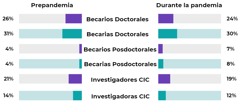 La lectura analítica en torno a la conformación del personal científico del CONICET, institucionalmente asociado a la UNSJ, da cuenta de que, si bien se experimentó un crecimiento durante la pandemia, todavía existen al menos dos brechas en materia de género: a) la segmentación horizontal ha alcanzado una efectiva paridad de género, sin embargo, esto se ha materializado gracias a la incorporación de más mujeres en las categorías iniciales y de mayor precarización; b) aquí, las posiciones más jerarquizadas, así como aquellas que ofrecen continuidad laboral, siguen siendo ocupadas mayormente por hombres, cuya asimetría tiende a aumentar mientras más alto es el escalafón.
