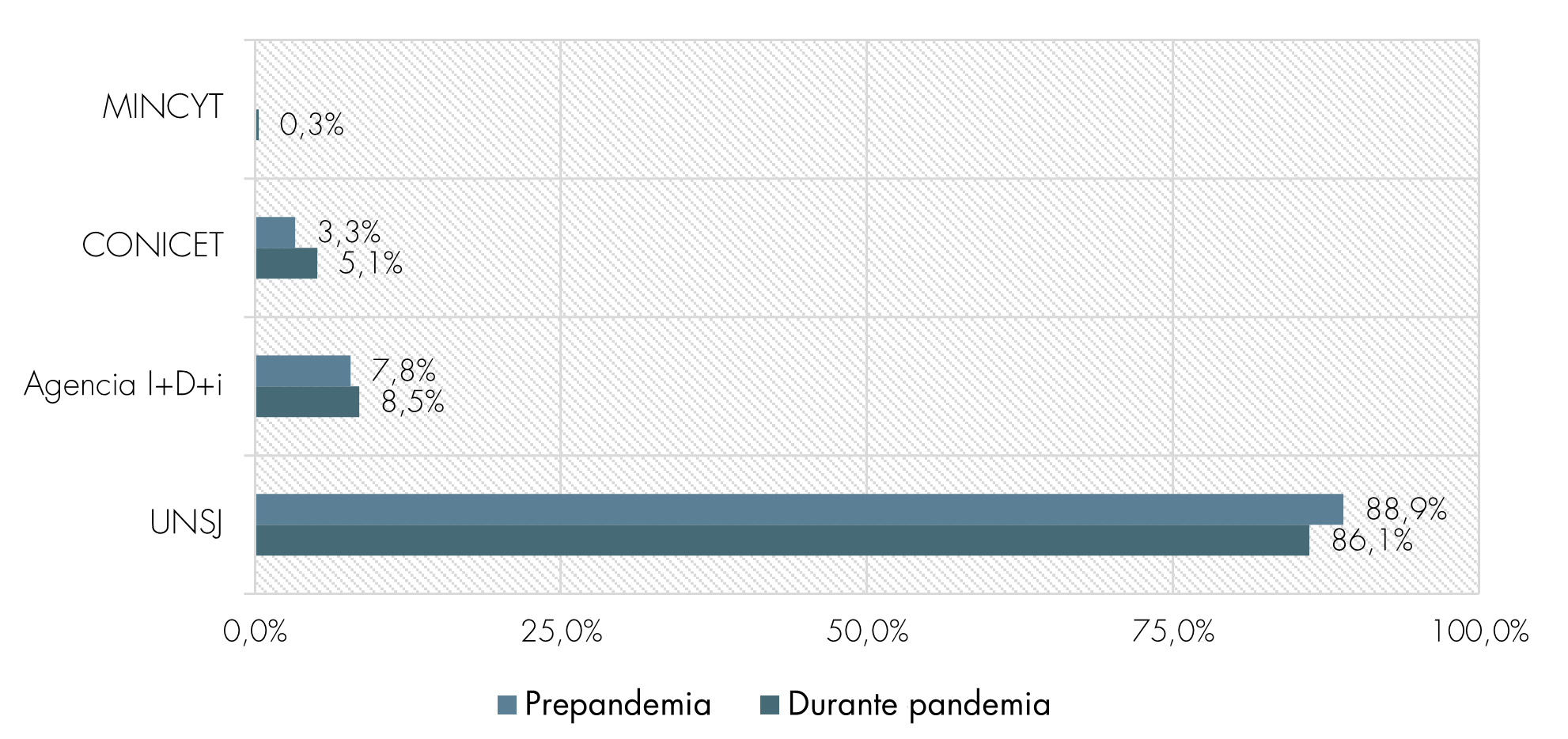 Si bien durante los años en los cuales se extendió la crisis sanitaria la UNSJ mantuvo una relevancia en la acreditación de proyectos, también se fue experimentando un relativo proceso de diversificación de las fuentes de financiamiento dedicadas a la investigación nacional. Así, junto con la extensión de la prórroga destinada a los PICT 2017, autorizada por la Agencia I+D+i, dicho organismo presentó nuevas convocatorias durante los años 2020 y 2021. El CONICET realizó acciones similares tanto para los PIP como los PUE, y, además, el antiguo MINCyT lanzó una convocatoria de proyectos PISAC ad hoc destinada a fortalecer los aportes de las ciencias sociales para analizar y comprender las transformaciones sociales suscitadas desde el advenimiento de la pandemia.
