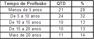 O Quadro 3 evidencia há quanto tempo o participante da pesquisa exerce sua profissão de docência e/ou auditoria. Observa-se que a maioria dos profissionais atua há menos de dez anos.
