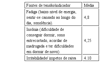 A tabela 2 evidencia tensão mediana no trabalho dos participantes da pesquisa.