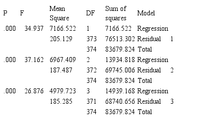 The above table shows Goodness of fit test for the three models. According to the F-test and the value of P is significant in all three models, but we consider a model that despite significant predictor variables known more.
