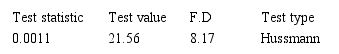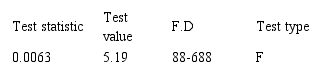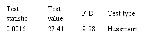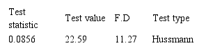 As a result of not choosing the integrated data model over the combined data model, we try to perform the Hussmann test in order to choose the model of constant effects instead of random effect model. The probability value of this test is less than the significance value of 5%. Therefore the evidence for rejection of constant effects model seem insufficient and the former is used for testing the first subsidiary hypothesis.