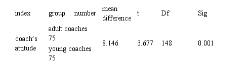 Finally the results of the present study showed that there is a significant difference between adult and youth coach attitudes towards sports counseling psychology (P=0.001). In other words, the positive attitude of young coach is significantly more than adult coach’s. Results related to adult educators and young people's attitudes are presented in Table 5.