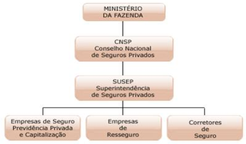 O mercado oficial de seguros no Brasil é registrado no Sistema Nacional de Seguros Privados, regulado e fiscalizado por uma instância federal superior denominada Conselho Nacional de Seguros Privados. Ao CNSP cabe, atuando através da Susep - Superintendência de Seguros Privados, ser o executivo do Ministério da Fazenda nesse mercado (Ribeiro, 2006). Sob essa estrutura se organizam as entidades privadas dispostas a operar em seguros privados e os corretores habilitados (CNSEG, 2014).