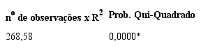 Para testar a consistência do modelo alguns procedimentos foram adotados. Inicialmente foi aplicado o teste de White, verificando-se que a hipótese nula de que a variância dos resíduos do modelo inicialmente ajustado é constante (homocedasticidade) foi rejeitada em nível de 1% de significância, constatando a heterocedasticidade do modelo. Diante disso, foi utilizada a correção Robusta de White, pois ela ajusta os erros padrão a partir da inconstância dos resíduos do modelo quando, na prática, não se conhece o seu padrão (Lima, 2008).