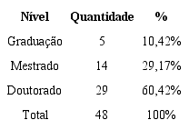 A formação acadêmica dos autores dos artigos publicados sobre a temática BPM pode ser analisada na Tabela 3. O maior percentual de qualificação acadêmica dos autores está concentrado no nível de doutorado, seguido por mestrado e, em terceiro, por graduação. Dessa forma, com base nos dados levantados, existe uma grande importância em relação ao nível de qualificação acadêmica dos autores, haja vista que, quanto maior o grau de titulação, maior é a quantidade de artigos publicados nas revistas analisadas.