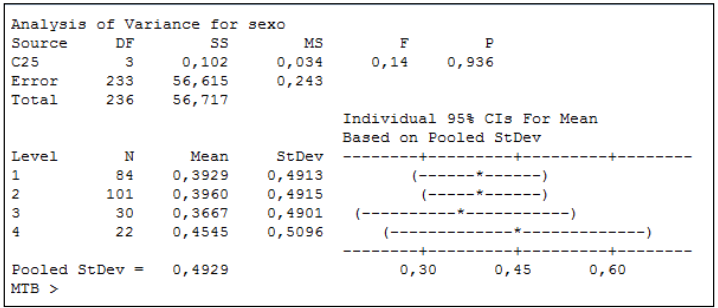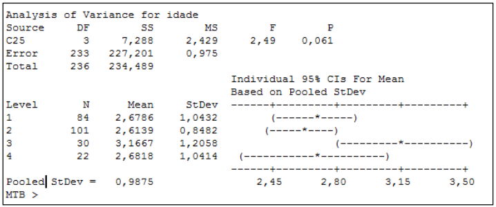 Para a composição da Tabela 1, observaram-se as análises realizadas no Minitab, no qual os dados trabalhados geravam resultados como os mostrados a seguir.