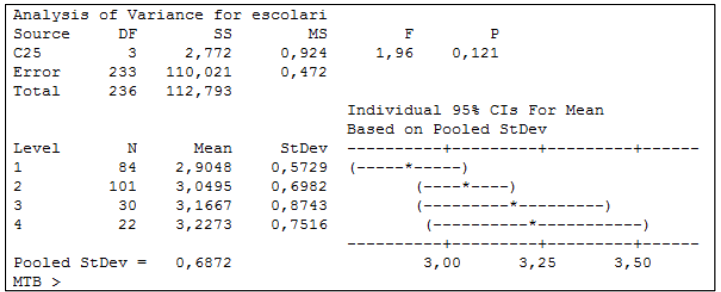 Apesar de os resultados apontarem para uma não correlação entre comportamento ético e variáveis individuais, como questões de estado civil, renda e escolaridade, um ponto interessante é destacado no estudo, com relação àquilo que nos é apresentado por Moura et al. (2008) em seu estudo sobre o comportamento ético durante uma análise da disponibilidade de microcrédito. Os autores afirmam nas conclusões de seu trabalho que características sociais e o nível de instrução dos indivíduos podem levá-los a agir de forma não ética, contudo, como apresentado na Figuras 5, não há diferença significativa entre as médias, a 95% de confiança, indicando que não se pode afirmar que tais aspectos auxiliam na definição daquilo que acarreta tal tipo de comportamento.