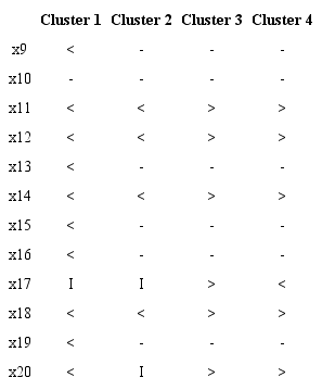 A Tabela 1 mostra como os grupos comportaram-se em relação às respostas sobre o comportamento ético, de forma que o primeiro cluster apresentou respostas que tendiam ao comportamento não ético, o segundo grupo apresentou um comportamento pouco ético, o terceiro escolheu respostas mais éticas em sua maioria, e o último grupo apresentou um comportamento ético superior aos dois primeiros, porém inferior ao terceiro.