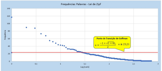 As frequências que estão acima do ponto T de Goffman compõem um grupo de apenas 28 termos, o que corresponde a 3,84%, em relação aos 729 termos identificados.