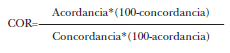 En esta etapa se estimó la acordancia, concordancia y Odds Ratio (COR). Estos son parámetros desarrollados en el marco de trials colaborativos para la estandarización de métodos de diagnóstico microbiológico, con la participación de distintos laboratorios y con el objetivo de estandarizar métodos de diagnóstico, cuyos resultados se expresaban cualitativamente (9).