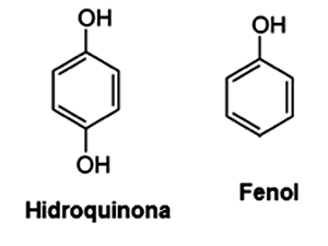 Toxinas. Los esporóforos frescos de A. xanthodermus produjeron 4,4’-dihidroxiazobenceno, fenol, p-quinol (=hidroquinona) y 4,4’-dihidroxibifenilo (Fig. 3) (49). Fue la primera vez que se encontró un compuesto azo endógenamente en la naturaleza, mientras que los restantes compuestos no se habían aislado previamente de hongos superiores. El fenol está presente en A. xanthodermus en una concentración suficientemente alta como para dar cuenta de su toxicidad (49). Todos estos compuestos son tóxicos y resulta llamativa su presencia en la naturaleza.