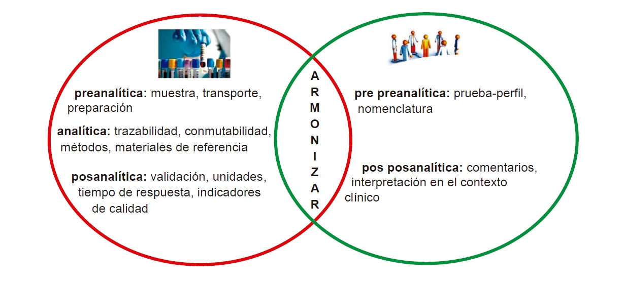 En las distintas áreas de la bioquímica clínica emerge la iniciativa de la armonización, seguramente como consecuencia de que las diferentes asociaciones internacionales como la IFCC, la American Association of Clinical Chemistry (AACC) y la European Federation of Laboratory Medicine (EFLM) vienen trabajando en proyectos para lograr minimizar las diferencias entre los distintos laboratorios (10).